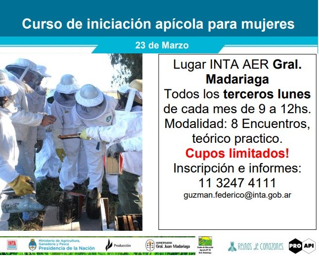 A partir del 23 de marzo, Madariaga contará con el dictado de un curso de iniciación apícola para mujeres.