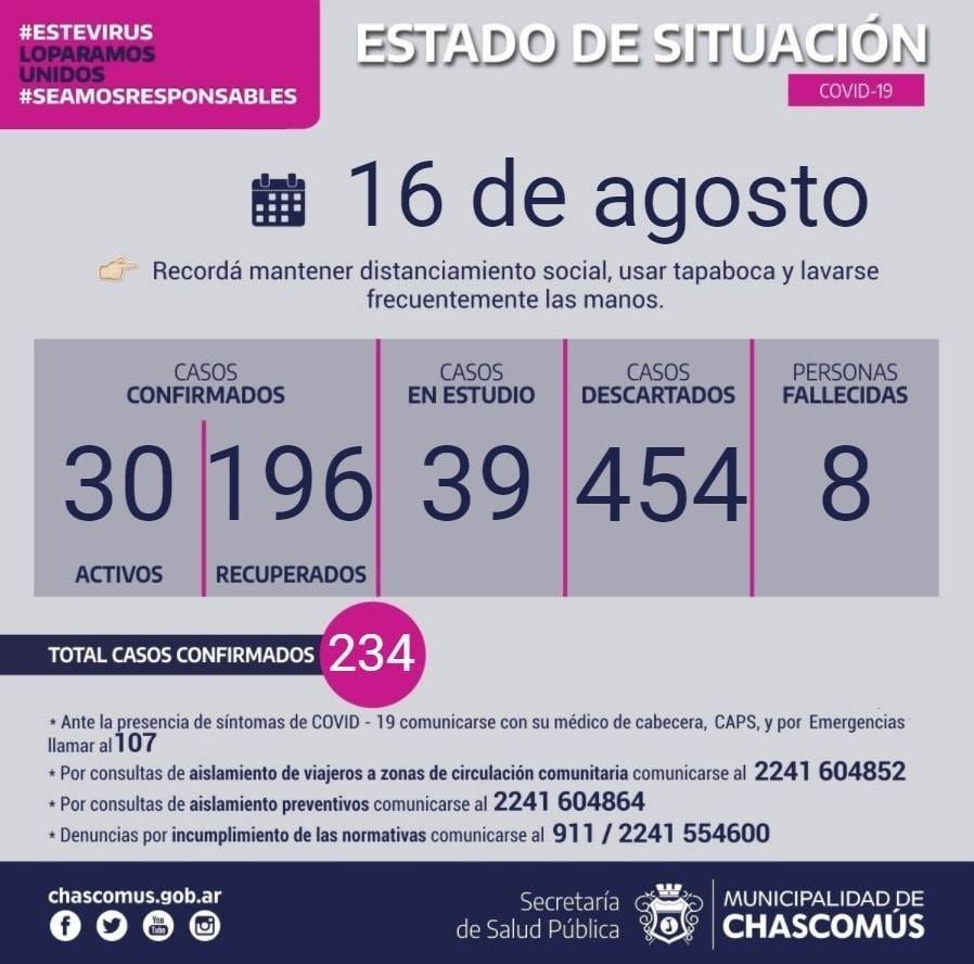 *REPORTE DIARIO | SITUACIÓN DE COVID -19 EN CHASCOMÚS*