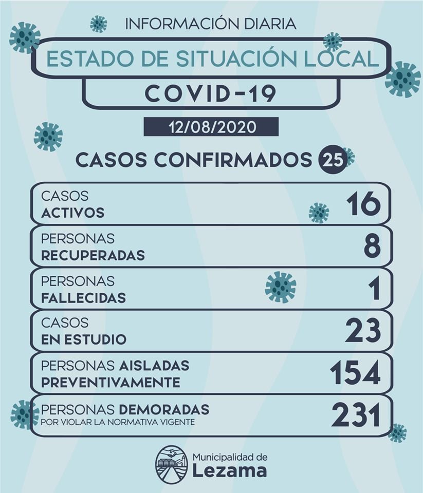 🔖 Este miércoles recibieron el alta cinco pacientes: 2 trabajadores del Banco Provincia (masculino de 58 años y femenina de 29), 2 trabajadoras de Salud (de 31 y 24 años) y un vecino de la localidad (masculino de 31 años). En total son 8 las personas recuperadas.