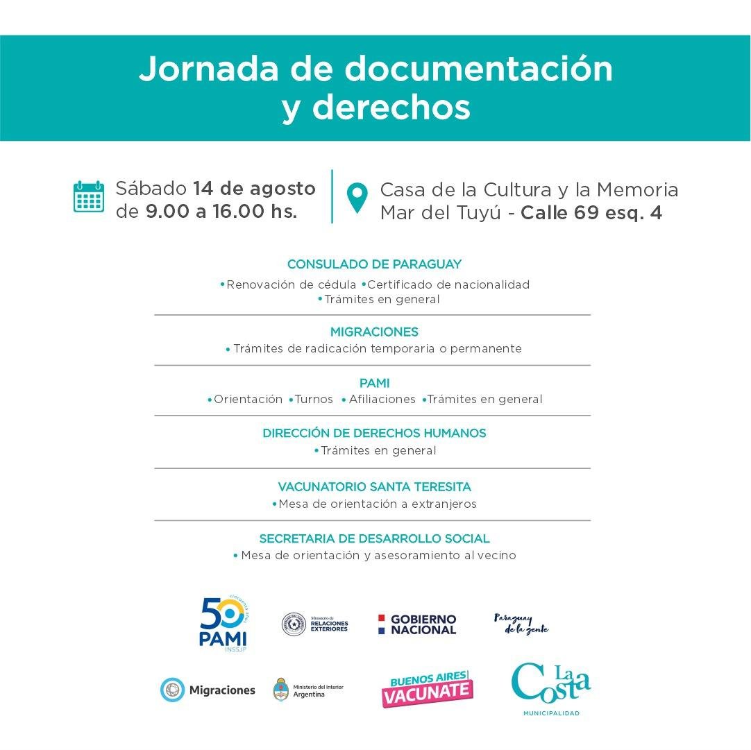 En este marco se realizarán distintos tipos de trámites y documentación para la población migrante de la comunidad paraguaya del Partido de La Costa, ya que funcionará un operativo móvil del Consulado General de la República de Paraguay y también para migrantes en general, ya que se contará con la presencia de un operativo móvil de Migraciones.