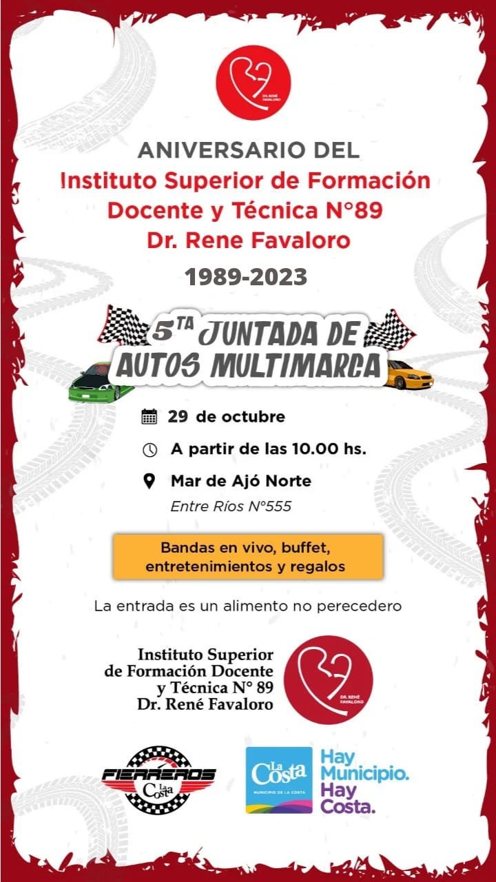 Este domingo 29, el Instituto Superior de Formación Docente y Técnica Nº 89 “Dr. René Favaloro” de Mar de Ajó celebrará su 34º aniversario. Las actividades tendrán lugar en Entre Ríos 555.