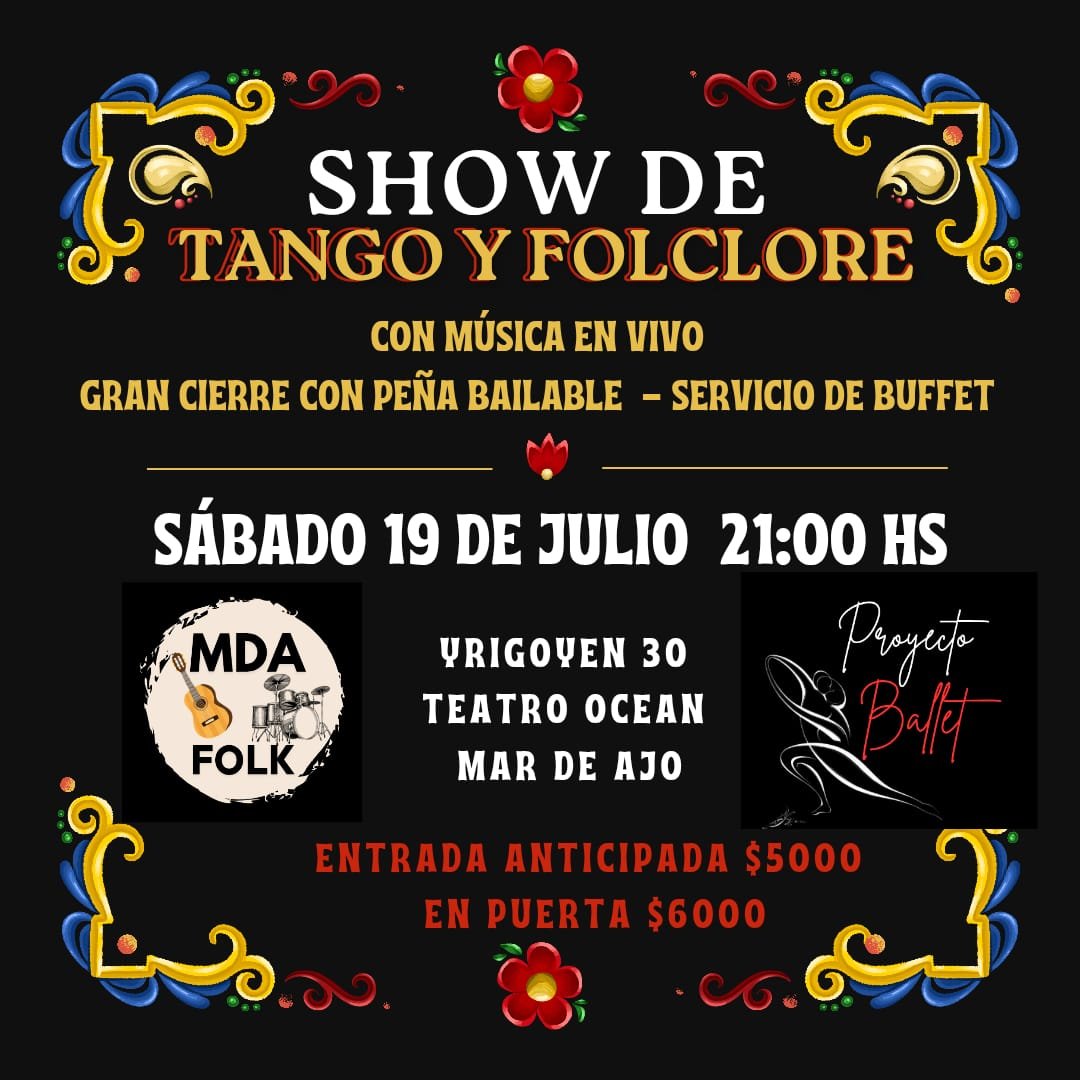 En el Teatro Ocean (Yrigoyen 30), en tanto, se presentará un show de tango y folklore que incluirá música en vivo y un gran cierre con peña bailable. Se anuncia la actuación de MDA Folk y Proyecto Ballet.
