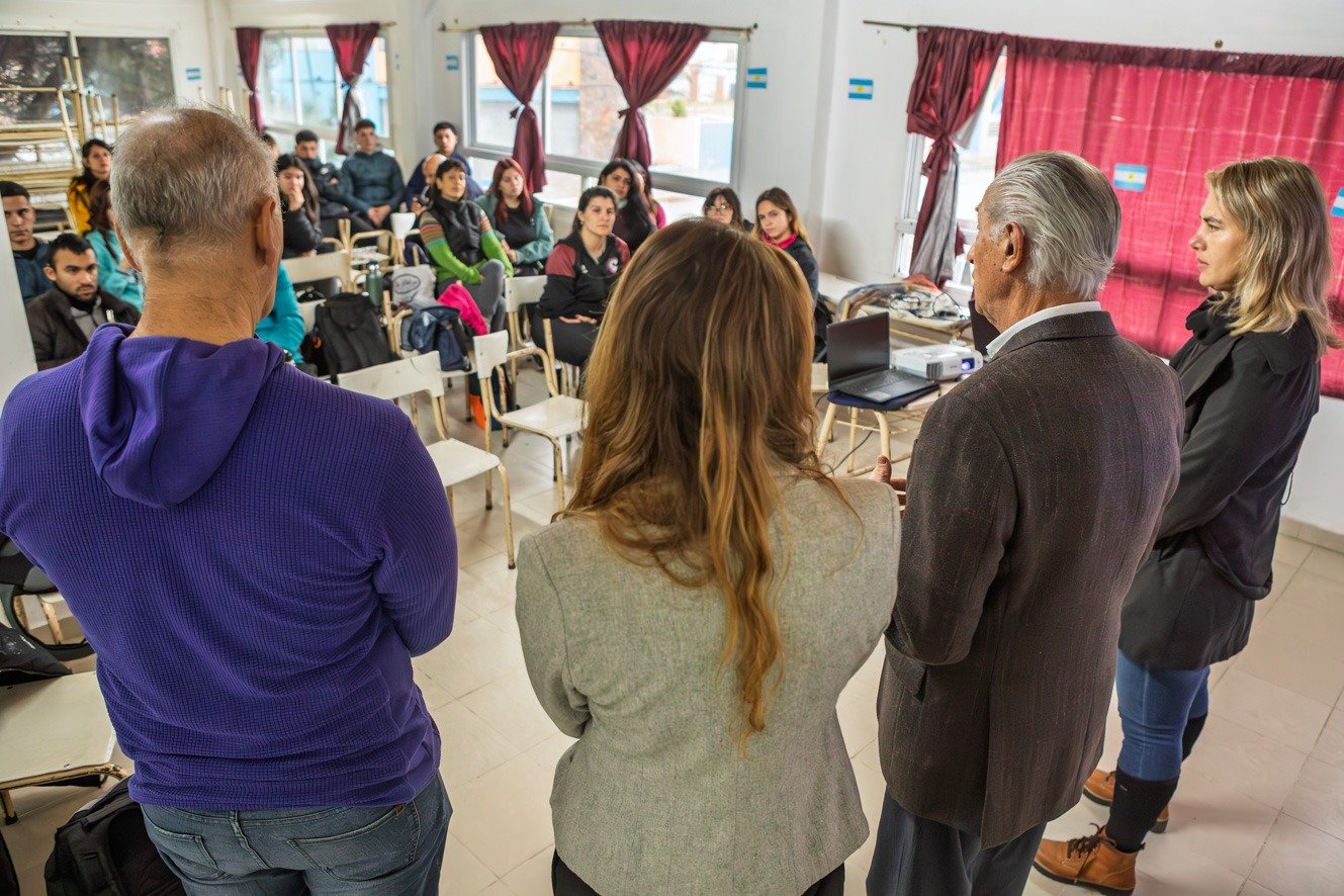 Durante la recorrida, Juan dialogó con la nueva directora del Instituto, Gabriela Lacor, con el objetivo de seguir fortaleciendo el vínculo entre la formación docente, el Estado y la comunidad. La visita del jefe comunal incluyó un espacio de intercambio con estudiantes de segundo y cuarto año, que se encontraban rindiendo las últimas materias del profesorado.