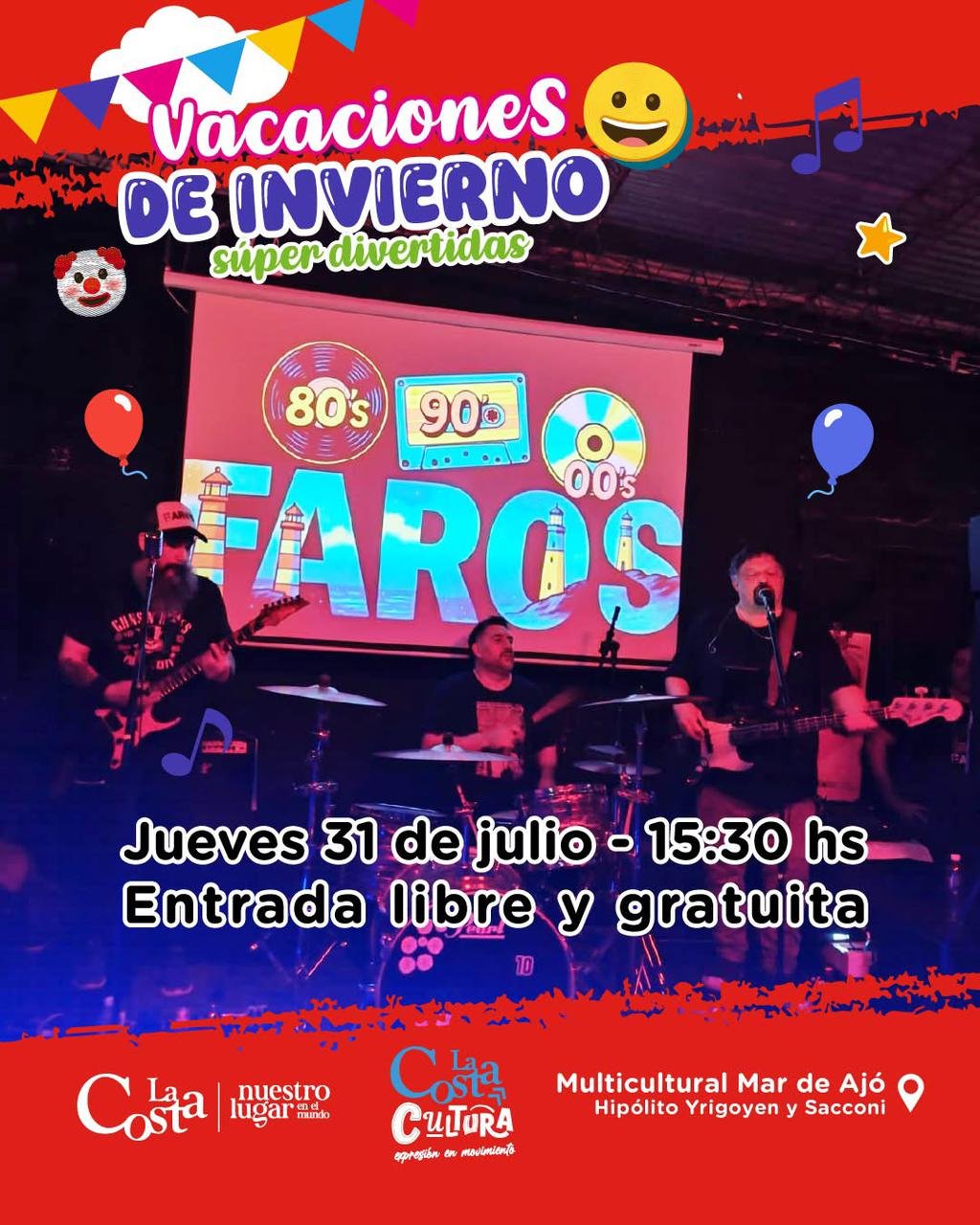 El jueves 31, a las 15.30, se vivirá una jornada musical imperdible con el Show #100 de Faros, que repasará clásicos de los ‘80, ‘90 y 2000. La entrada es libre y gratuita.