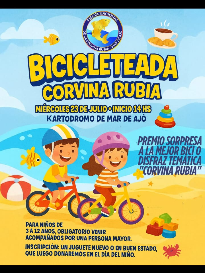 El próximo miércoles 23 de julio, en el marco de las vacaciones de invierno, Mar de Ajó será escenario de una nueva edición de la Bicicleteada Corvina Rubia, una propuesta recreativa y solidaria impulsada por la organización de la Fiesta Nacional de la Corvina Rubia, con el acompañamiento del Municipalidad de La Costa.