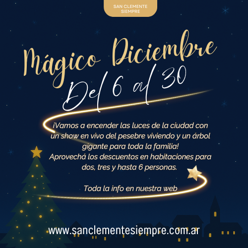 La Asociación de Hoteleros y Gastronómicos de San Clemente del Tuyú (filial FEHGRA) confirmó el regreso de “Mágico Diciembre”, el tradicional espectáculo de luces y actividades comunitarias que marcará el inicio oficioso de la temporada de verano 2026.