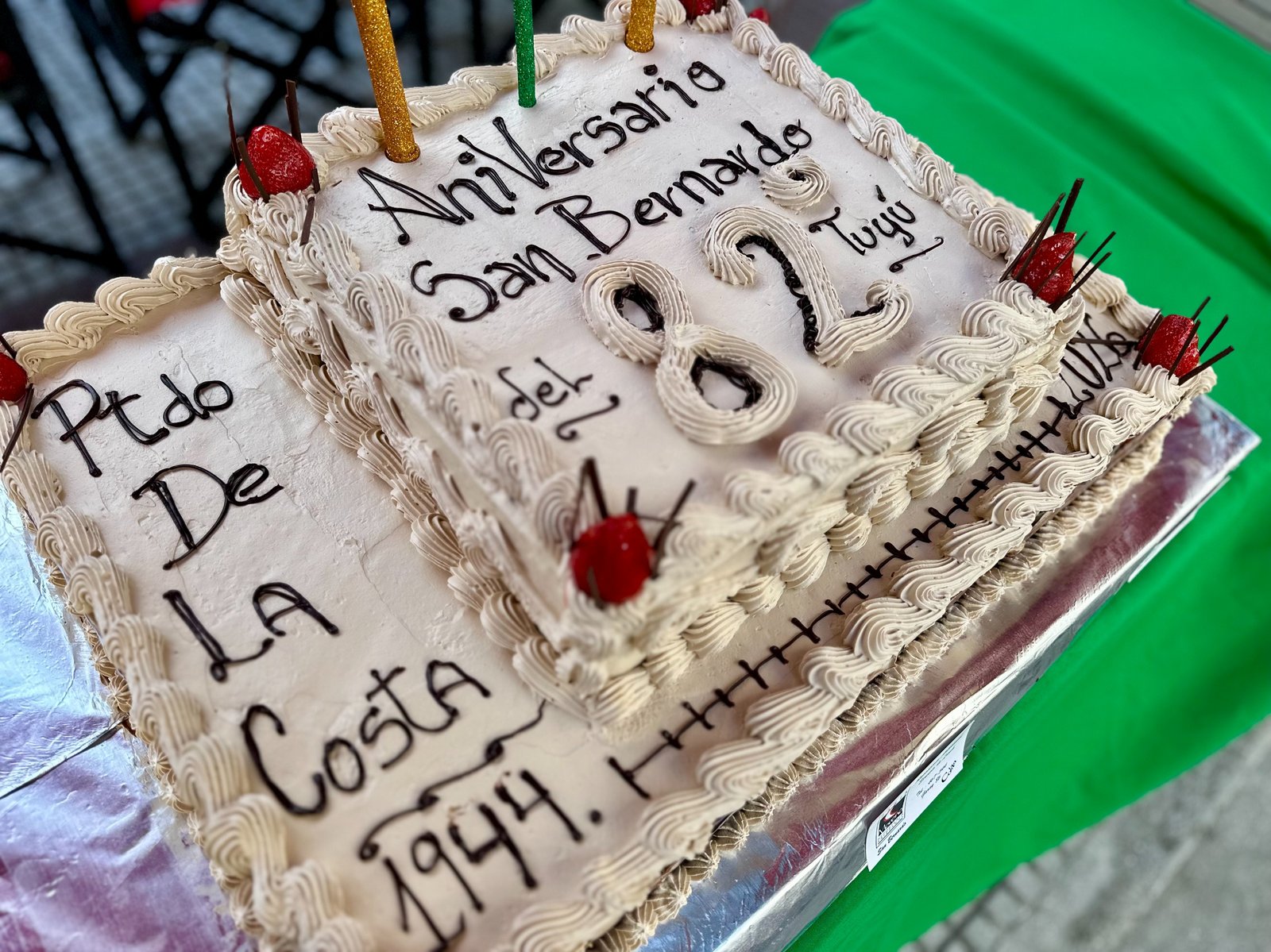 Del festejo de los 82 años de la localidad, que se fundó el 4 de enero de 1944, participaron los pioneros Enrique Parra y Antonio Dorigoni, acompañados por sus familias, junto a referentes de distintas instituciones locales y autoridades municipales que compartieron la celebración. También estuvieron presentes el Padre Maximiliano Turri, el flamante responsable de la Unidad de Gestión de San Bernardo, Cristian Castelo, y el presidente de la Asociación de Fomento San Bernardo, Gastón Reynoso.
