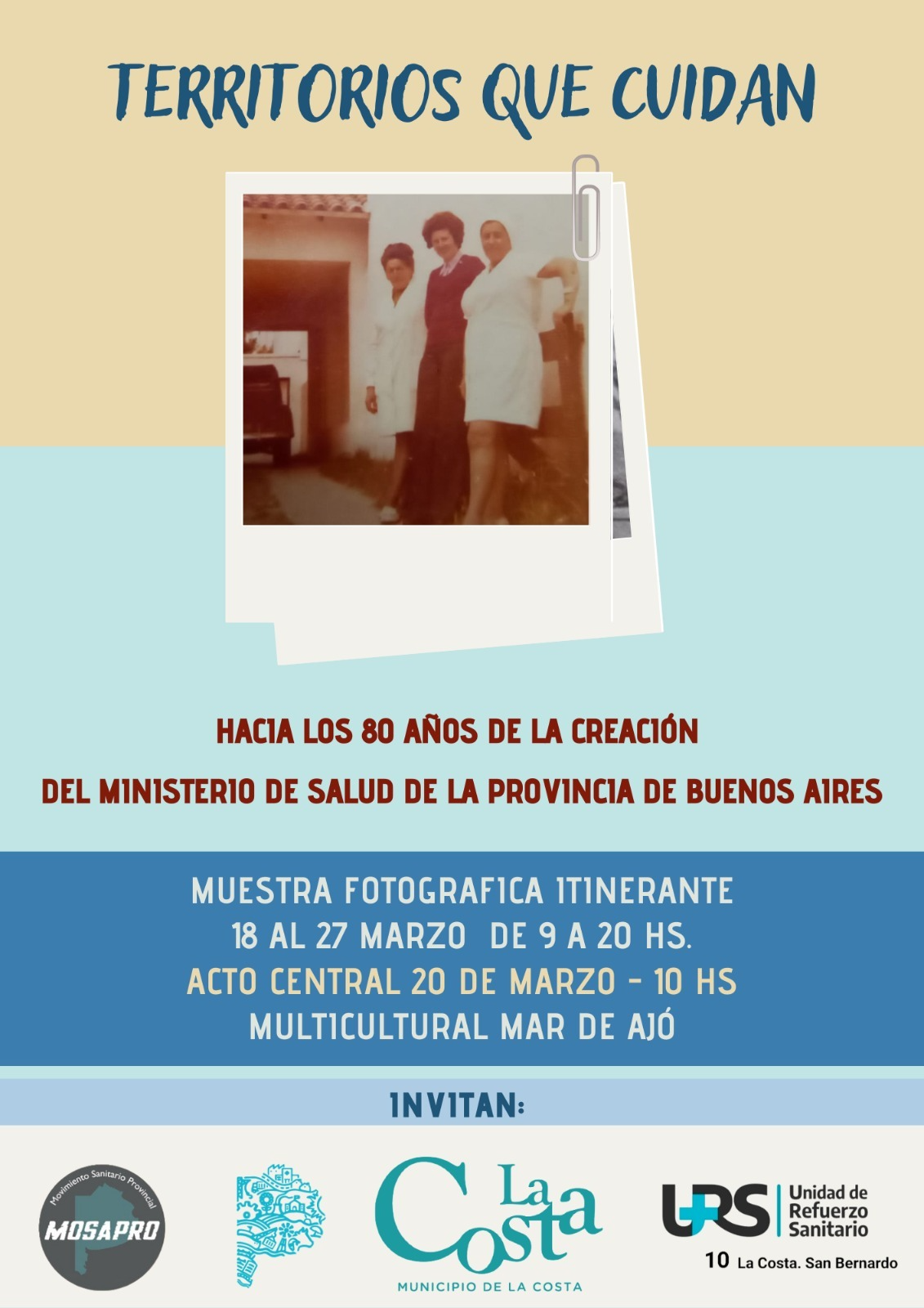 Camino a los 80 años de la creación del Ministerio de Salud bonaerense, el Espacio Multicultural de Mar de Ajó será escenario del acto central de la muestra fotográfica itinerante “Territorios que cuidan”.
