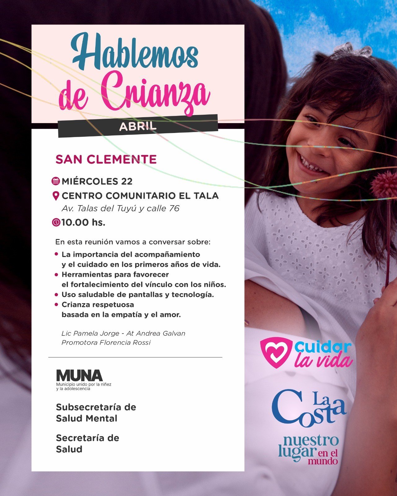 La Municipalidad de La Costa invita a la comunidad a participar del encuentro “Hablemos de Crianza”, una propuesta orientada a generar espacios de reflexión, acompañamiento e intercambio sobre el cuidado y desarrollo en la infancia.